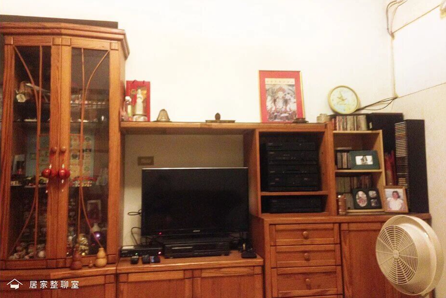 「斷捨離」在我們家實施多年,很多陳年雜物都慢慢清走了,傢俱也逐一翻新,唯獨這面電視櫃,因為上面擺了一尊神像,所以一整牆的櫃子都不能移動,想換更大的電視也沒辦法。更可怕的是,因為櫃子都沒動,所以也沒人想主動去整理那些展示出的CD、音響、裝飾品等等。那尊神像,我們家都稱為菩薩,是媽媽請來的,拜拜的工作也一直是媽媽在做,早晚上一次香,持續了36年,沒有間斷。