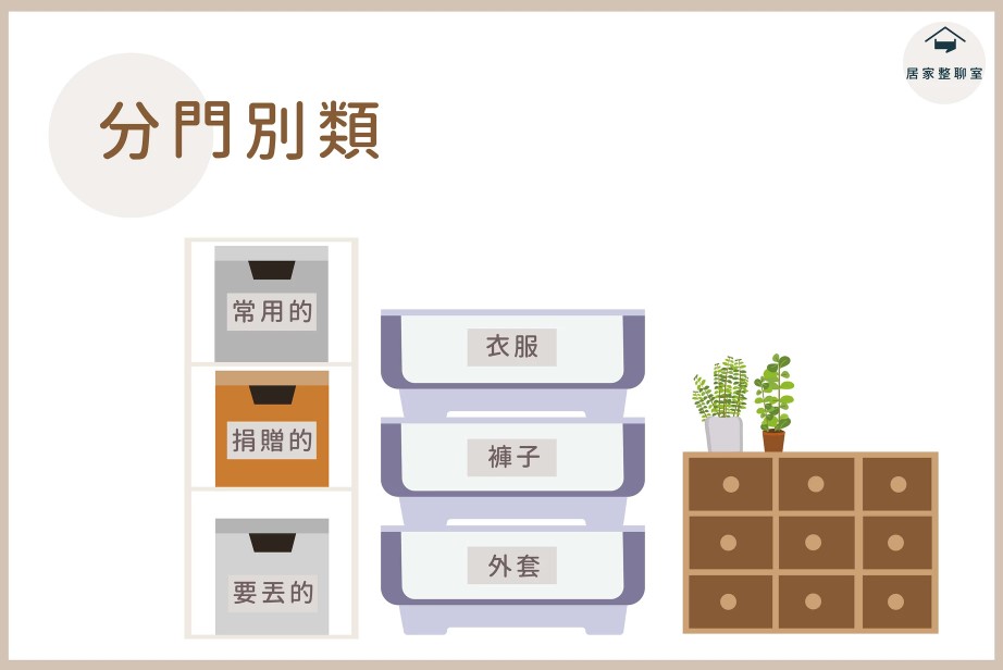 依目的來分類,分別裝箱,並逐一檢查每個分類讓收納更有效率。